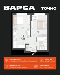 1-к, Барса ЖК, 1в Показать на карте