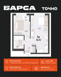 1-к, Барса ЖК, 2в Показать на карте