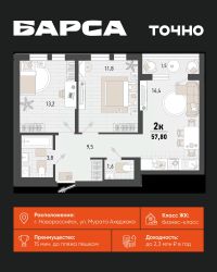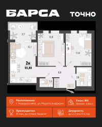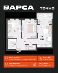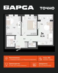 2-к, Барса ЖК, 2в Показать на карте