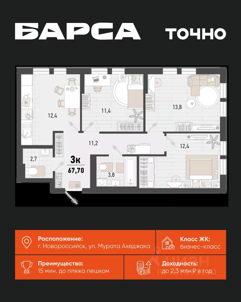 Уникальная 2-комнатная Квартира 82 площадью 58,74 кв.м. в ЖК ''Золотой Берег'' — 800 метров или 10 минут до моря, современный дизайн и все условия для комфортной жизни! Предлагаем вам идеальную квартиру в жилом комплексе ''Золотой Берег'' от компании ''СРЕДАстрой''. Это уникальное предложение сочетает в себе все, что нужно для удобной и комфортной жизни в одном из лучших районов города. Преимущества квартиры: • 800 метров или 10 минут до моря — наслаждайтесь свежим морским воздухом, ежедневным завораживающим видом на море, живописным закатом и это каждый день. • Ипотека от 3,5 % — доступные условия для приобретения квартиры/ жилья вашей мечты. • Рядом с домом: 2 детских сада, 4 школы — всё необходимое для развития и обучения ваших детей в шаговой доступности. • Детские площадки во дворе без машин — безопасная среда для игр и отдыха. • Выбор отделки: квартиры с качественной отделкой или качественная ПЧО/ без отделки, что позволит вам создать интерьер по своему вкусу. • Современный и красивый дизайн домов, подъездных холов — эстетика и стиль, продуманные до мелочей. Инфраструктура: • В шаговой доступности: гипермаркет Лента, магазины, кафе, аптеки, фитнес-центры — всё, что нужно для комфортной жизни. • Тип дома: монолитно-кирпичный, построенный по современным технологиям, 17/ 16 этажей с прилегающими торгово-офисными помещениями. • Паркинг: -1 этаж подземный отапливаемый паркинг с видеонаблюдением 24/7. Прямой доступ на лифте — удобно и безопасно.закрытая территория всего комплекса, нет посторонних людей. Описание квартиры: • Просторные комнаты с продуманной планировкой и панорамными окнами. • Возможность индивидуального дизайна интерьера или готовая качественная отделка. • Современные инженерные системы и высококачественные материалы. ЖК ''Золотой Берег'' — это сочетание высокого качества строительства, удобной инфраструктуры и прекрасного расположения. Здесь каждый найдет всё, что нужно для комфортной и счастливой жизни.