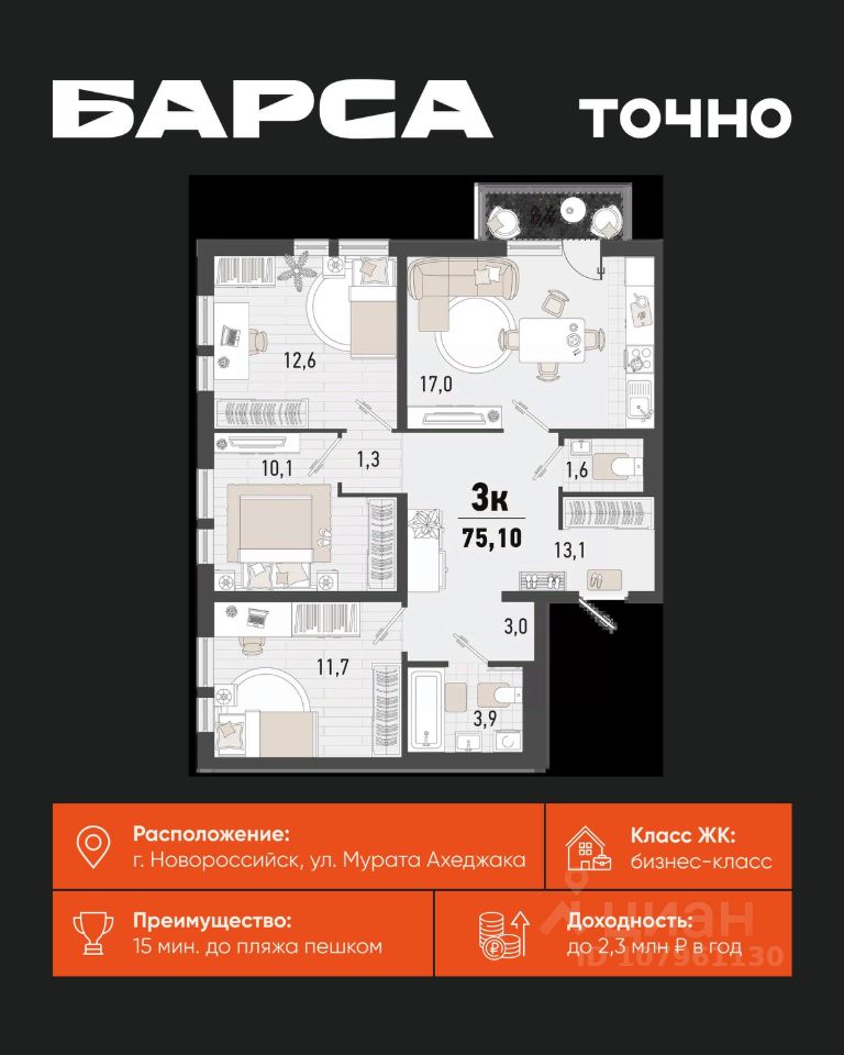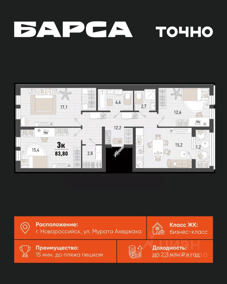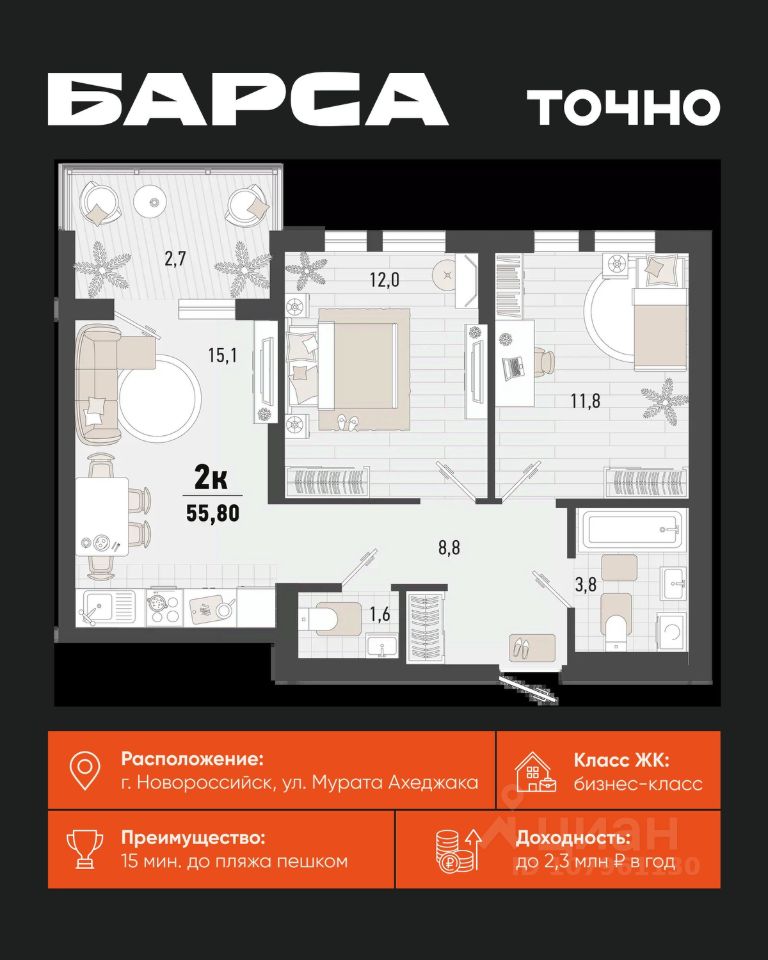 Жилой комплекс ''Барса'' расположился в самом живописном Южном районе Новороссийска, всего в 15 минутах ходьбы от пляжа ''Алексино''. Море будет видно даже из окон невысоких этажей. Проект объединяет просторные квартиры с панорамными окнами, продуманные зоны отдыха и площадки для спорта, прогулочный бульвар, беседки и уникальные арт-объекты. В жилом комплексе запланированы детский сад на 380 мест и школа на 1 750 мест. Больше не нужно выбирать между жизнью на курорте и в мегаполисе. ''Барса'' — новый проект для безупречной жизни людей на побережье!