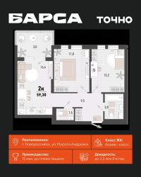 Жилой комплекс ''Барса'' расположился в самом живописном Южном районе Новороссийска, всего в 15 минутах ходьбы от пляжа ''Алексино''. Море будет видно даже из окон невысоких этажей. Проект объединяет просторные квартиры с панорамными окнами, продуманные зоны отдыха и площадки для спорта, прогулочный бульвар, беседки и уникальные арт-объекты. В жилом комплексе запланированы детский сад на 380 мест и школа на 1 750 мест. Больше не нужно выбирать между жизнью на курорте и в мегаполисе. ''Барса'' — новый проект для безупречной жизни людей на побережье!