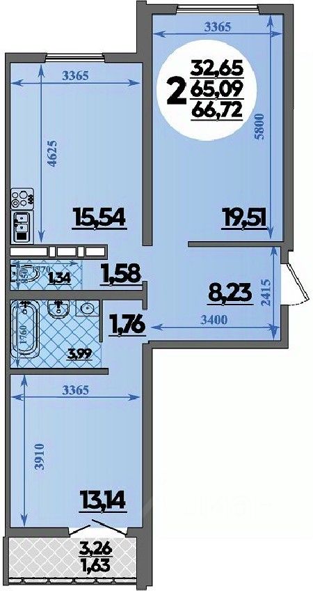 66 м² · Этаж 2 из 16