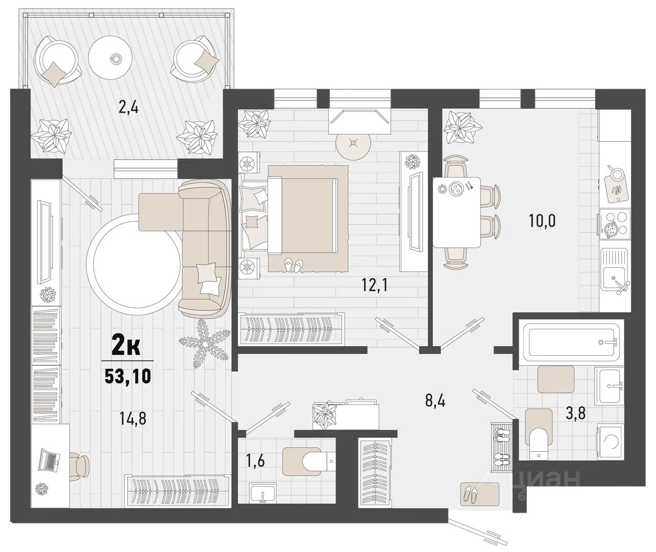 53 м² · Этаж 9 из 15