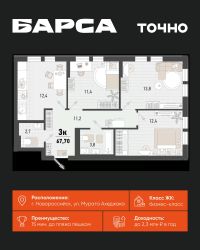 Жилой комплекс ''Барса'' расположился в самом живописном Южном районе Новороссийска, всего в 15 минутах ходьбы от пляжа ''Алексино''. Море будет видно даже из окон невысоких этажей. Проект объединяет просторные квартиры с панорамными окнами, продуманные зоны отдыха и площадки для спорта, прогулочный бульвар, беседки и уникальные арт-объекты. В жилом комплексе запланированы детский сад на 380 мест и школа на 1 750 мест. Больше не нужно выбирать между жизнью на курорте и в мегаполисе. ''Барса'' — новый проект для безупречной жизни людей на побережье!