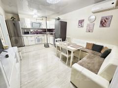 В продаже 3 комнатная квартира с ремонтом под ключ в Жилом комплексе на проспекте Ленина, 95 проект Специализированного застройщика Компания ВЫБОР - крупнейшего в Новороссийске в сегменте премиум-жилья. Это жилой квартал бизнес-класса, проработанный в отношении дизайна, возведенный по технологии монолитного строительства с кирпичной облицовкой стен. Просторные квартиры, обустроенное придомовое пространство, охраняемая территория, видеонаблюдение, ландшафтный дизайн с озеленением, подземная парковка, объекты социальной инфраструктуры на нижних этажах зданий.Восточная сторона комплекса выходит окнами к лиману и береговой линии Суджукской косы. Западная сторона обращена к Пионерской роще. Из окон северной стороны просматривается мемориальный комплекс Малая Земля. Южные окна смотрят на спортивные объекты и футбольные поля. В шаговой доступности фитнес-центры, кафе и рестораны, гипермаркет Магнит, школы, поликлиники и детские сады, благоустроенный пляж Суджукская Коса и Алексино.О квартире Общая площадь с учетом лоджии 105,8 Площадь квартиры 100,6, Жилая площадь 58,5, Кухня столовая - 20,0, спальни 15,0 + 20,0+23 , ванная комната 4,5, Санузел и прачечная 3,9 В квартире выполнен полный ремонт с использованием высококачественных, экологически чистых отделочных материалов - на полу паркетная доска , стены - декоративная штукатурка и окраска, потолки комбинированные, оборудованы подсветкой по периметру каждой зоны, теплый пол в санузлах и коридоре, ванная комната керамогранит , керамическая плитка. Во всех комнатах установлены радиаторы отопления, в столовой , где панорамное остекление конвектор. Из одной из спален выход на большую просторную лоджию с шикарным видом и витражным остеклением в пол. Квартира очень теплая и светлая, приятные спокойные цвета отделки. Установлена кухня от компании Дриада, вся встроенная техника от ведущих производителей BOSCH и NEFF. Комплектация - духовой шкаф, микроволновая печь, варочная панель стеклокерамика, вытяжка, большая посудомоечная машина, мойка из нержавеющей стали, встроенный холодильник и морозильная камера. В сан узле стиральная машинка и сушка. Дорогая качественная мебель, матрасы BOSS.XO, в коридоре и спальне организована встроенная система хранения, в каждой комнате и кухне установлены сплит системы. В квартире никто не проживал, вся мебель и техника новая, останется новым собственникам. Ремонт делался для себя. Все работы выполнены профессионалами своего дела. Продумано все до мелочей, грамотное зонирование, красивая подсветка в каждой комнате, разводка сети интернет и тв кабелей, и многое другое. Все приборы учета воды и электроэнергии, а также тепловой счетчик установлены вне квартиры. Показания снимаются представителями управляющей компании самостоятельно. Все фотографии реальные. Показ по предварительной договоренности в удобное время