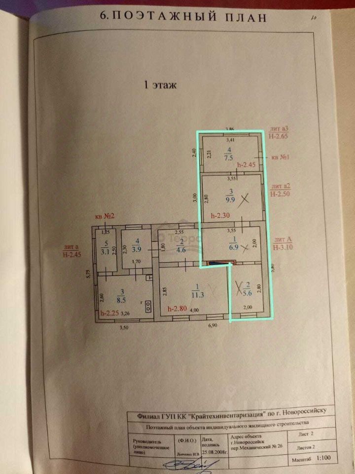 Код объекта: 655410. Продаётся большой дом в центре города напротив школы 21 Этажность - 2 Площадь участка - 5.42 сот. Общая площадь - 94 кв.м Жилая площадь - 68,6 кв.м Кухня - 10,3 кв.м Сан.узел - совмещенный Балкон - 5,15 кв.м Межэтажные перекрытие - бетонные Материал стен - кирпич Кровля - шифер Облицовка фасада - кирпич Коммуникации: Электричество - 15 кВт Вода - центральная Канализация - центральная Отопление - индивидуальное газ Подъезд к участку - асфальт Описание: Продаётся большой дом в самом сердце города-героя Новороссийск, напротив через дорогу школа 21. Отличный вариант для семьи с детьми школьного возраста. Район максимально тихий так как далеко от основного автомобильного трафика города. Имеется два этажа: 1-й этаж: Большая гостиная в 25 м.кв, просторная кухня 10,3 м.кв ,совмещённая ванна и туалет 4,6 м.кв 2-й этаж: 3 спальни (одна изолированная 17 м.кв и две комнаты совмещённые 15 м.кв и 10,8 м.кв) Большой балкон в 5 м.кв. Все коммуникации центральные: вода, свет, газ, канализация. ( имеются счетчики). Один собственник (более 5 лет), никто не прописан. Местоположение: Центральный район, рядом школа, автовокзал , торговый центр и даже центральный рынок, но при этом дорога перед домом не является часто используемой так как основные авто артерии города проходят по другим дорогам. Для вас: Онлайн сделка. Юридическая проверка документов. Поможем с одобрением ипотеки на выгодных условиях от ведущих банков. Сделка - застрахована. Проводим сделки: С использованием материнского капитала. Военного сертификата. С применением аккредитива и банковской ячейки. С вами работает персональный менеджер. Метротека-Владис - глобальное видение, локальная экспертиза. ЗВОНИТЕ - показ в удобное для Вас время!