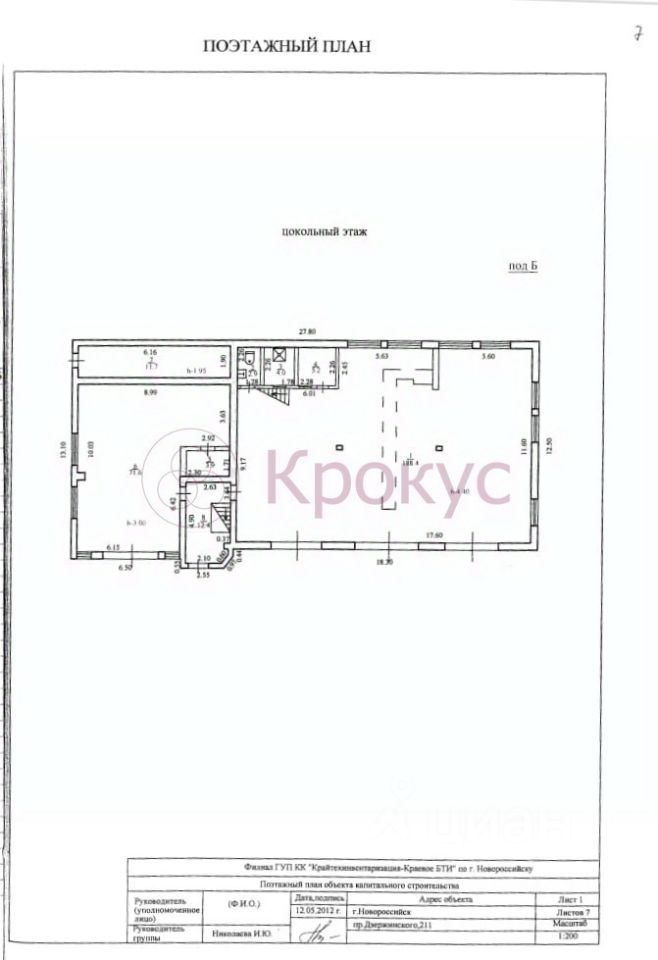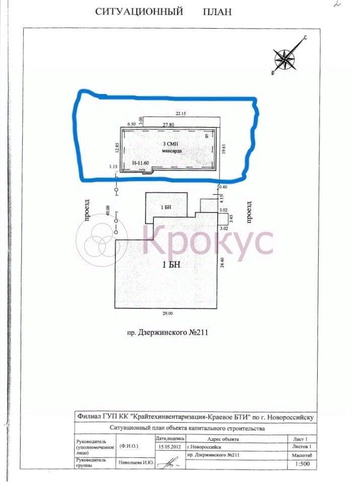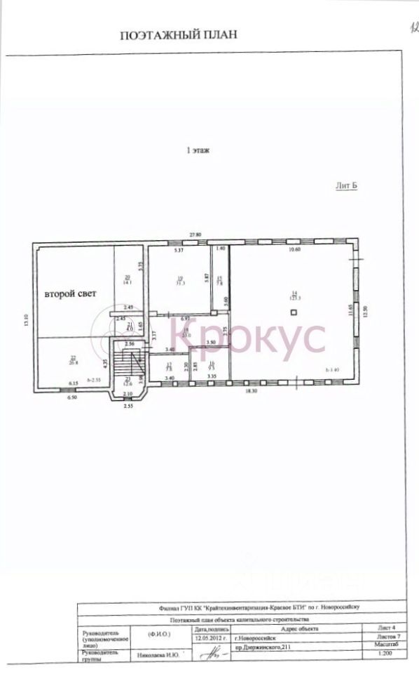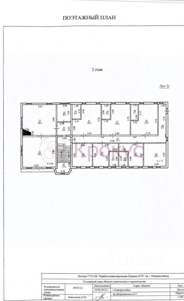 В городе Новороссийск Краснодарского края продам дом площадью 1087 кв.м. на земельном участке 2504 кв.м.(25 соток). Дом зарегистрирован как Жилой на з/участке с назначением ИЖС. Строился дом под гостиницу (схема прилагается: Второй и третий этаж одинаковые). Земельный участок расположен в зоне ОД-2 - зона общественного центра местного значения, поэтому возможно использования в деловых целях: для административных зданий, предпринимательской деятельности. Участок имеет фасад по улице Ленина 27 метров(забор и въездные ворота). Газ проходит по участку, свет и вода рядом, септик на 180 кубов готов. Межевание проведено. Один собственник более 5 лет. Номер объекта:353