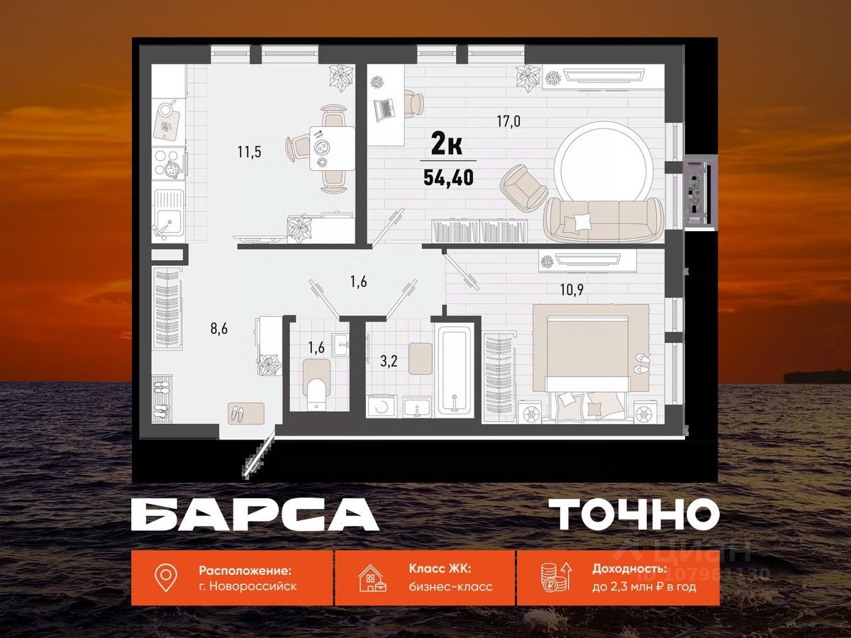 ЖК ''Моренуар'' — это новый уровень жизни в Новороссийске: современная архитектура, вдохновлённая морем, продуманный комфорт и высокая инвестиционная привлекательность. Эстетика курортной жизни в городе! Престижное местоположение. Комплекс расположен в южном районе Новороссийска, по адресу ул. Котанова 9. Близость к Чёрному морю — морские бризы, панорамные виды на горы и лёгкий доступ к пляжу. Высокое качество строительства. Монолитно-каркасная технология строительства гарантирует надёжность, отличную звукоизоляцию и энергоэффективность. Вентилируемый фасад из композитных панелей, благородных коричневого и бежевого оттенков, придаёт комплексу респектабельный внешний вид и обеспечивает долговечность конструкции. Высота потолков варьируется от 2,87 м до 6,4 м. На верхних этажах расположены видовые квартиры с просторными террасами, откуда открываются панорамные виды на город и море. Внутренне пространство. Дизайнерские холлы с современным оформлением подчёркивают статус жилого комплекса. Входная группа расположена на уровне земли для безопасности и комфорта жителей. Внутри вас ждёт красивая зона ожидания, места для хранения и колясочные. Лифты опускаются в подземный паркинг, обеспечивая удобный доступ к автомобилям в любую погоду. Комплексное видеонаблюдение внутри и снаружи жилого комплекса. Инфраструктура. На территории комплекса расположены 2 школы, 4 детских сада, поликлиника и специализированные студии для развития детей. Спортивные и детские площадки, места отдыха для жителей разных возрастов. На первых этажах комплекса разместятся 128 тысяч квадратных метров коммерческих помещений — магазины, кафе и сервисные центры в шаговой доступности. Варианты отделки. Предчистовая отделка в формате White Box. Это оптимальное решение для тех, кто хочет самостоятельно выбрать финишные материалы и воплотить в жизнь свои дизайнерские идеи. Квартиры с ремонтом - идеальное решение для тех, кто ценит своё время и хочет заехать сразу. Условия приобретения. Ипотека от ведущих банков. Льготные программы. Рассрочка от застройщика. Покупка для инвестиций. К моменту сдачи объекта стоимость вырастает — чистая прибыль без риска. Забронируйте квартиру сейчас и зафиксируйте цену на старте — это ваше преимущество на растущем рынке Новороссийска.