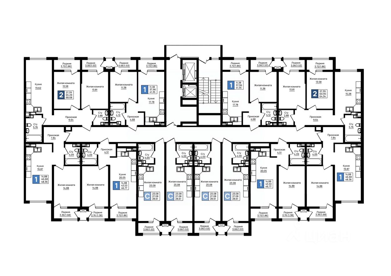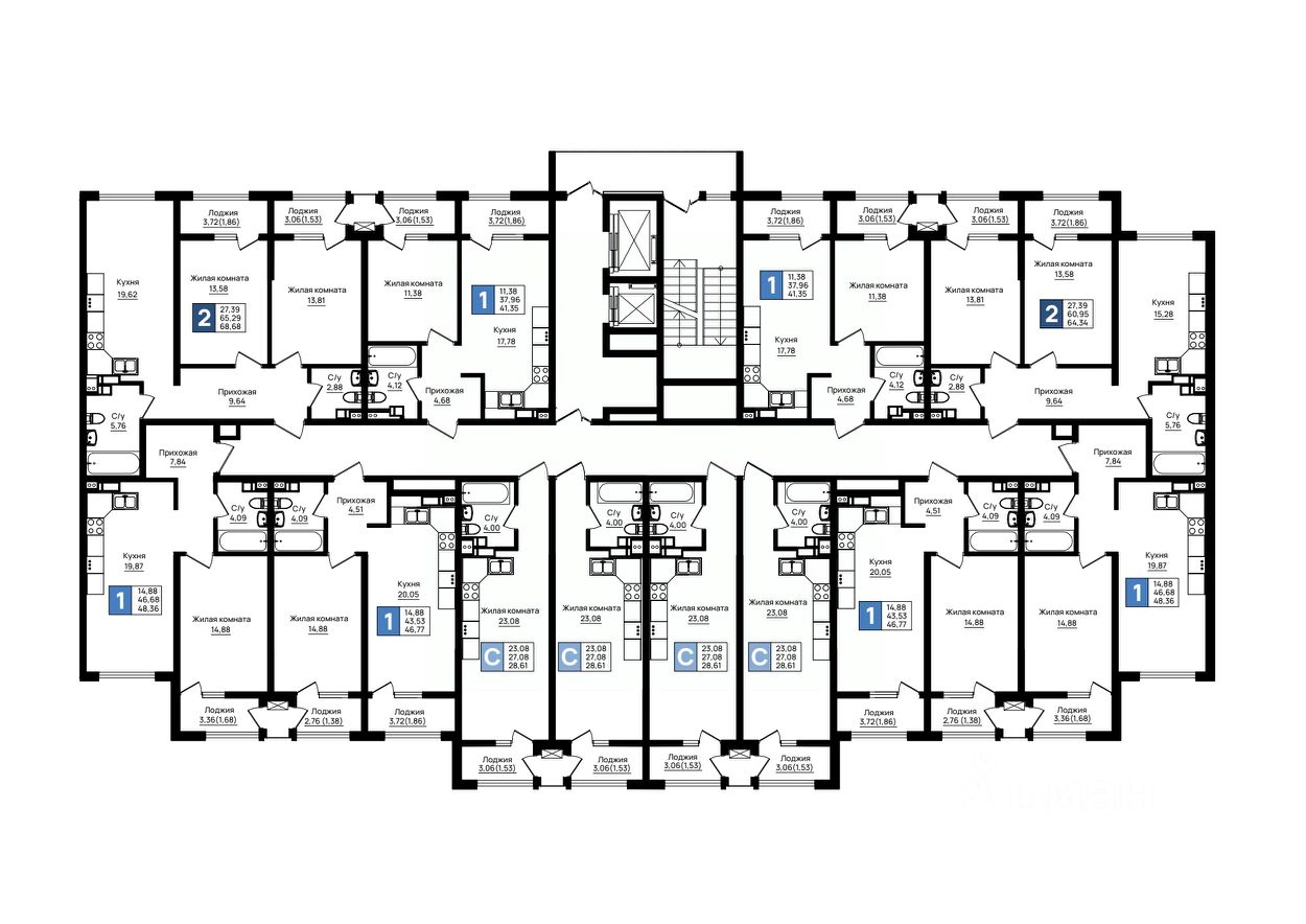 68 м² · Этаж 16 из 20