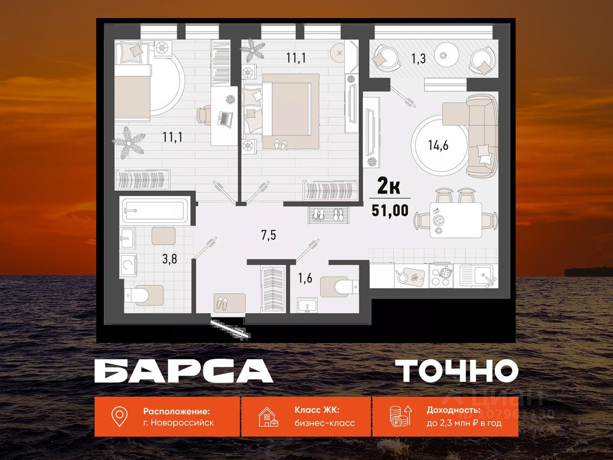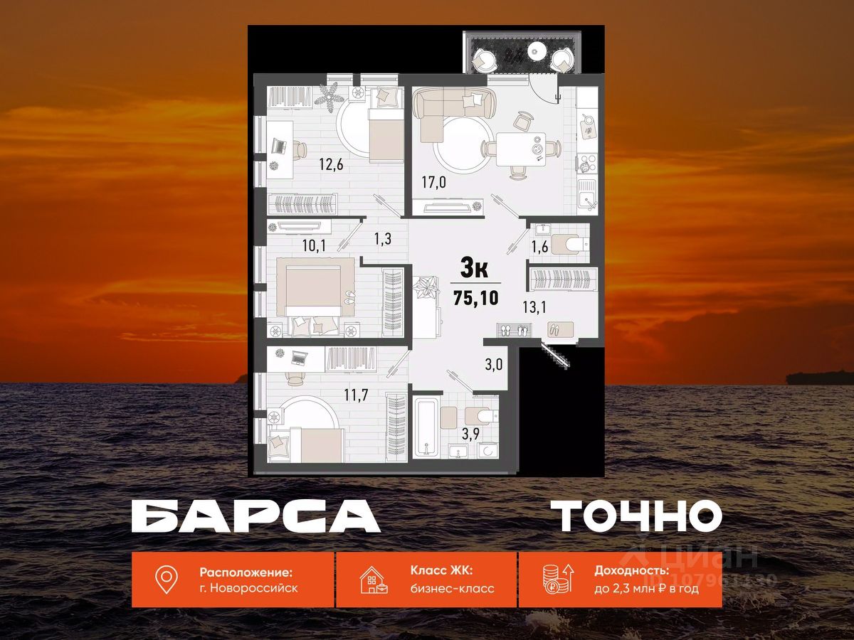 Уникальная 2-комнатная Квартира 44 площадью 97,3 кв.м. в ЖК ''Золотой Берег'' — 800 метров или 10 минут до моря, современный дизайн и все условия для комфортной жизни! Предлагаем вам идеальную квартиру в жилом комплексе ''Золотой Берег'' от компании ''СРЕДАстрой''. Это уникальное предложение сочетает в себе все, что нужно для удобной и комфортной жизни в одном из лучших районов города. Преимущества квартиры: • 800 метров или 10 минут до моря — наслаждайтесь свежим морским воздухом, ежедневным завораживающим видом на море, живописным закатом и это каждый день. • Ипотека от 3,5 % — доступные условия для приобретения квартиры/ жилья вашей мечты. • Рядом с домом: 2 детских сада, 4 школы — всё необходимое для развития и обучения ваших детей в шаговой доступности. • Детские площадки во дворе без машин — безопасная среда для игр и отдыха. • Выбор отделки: квартиры с качественной отделкой или качественная ПЧО/ без отделки, что позволит вам создать интерьер по своему вкусу. • Современный и красивый дизайн домов, подъездных холов — эстетика и стиль, продуманные до мелочей. Инфраструктура: • В шаговой доступности: гипермаркет Лента, магазины, кафе, аптеки, фитнес-центры — всё, что нужно для комфортной жизни. • Тип дома: монолитно-кирпичный, построенный по современным технологиям, 17/ 16 этажей с прилегающими торгово-офисными помещениями. • Паркинг: -1 этаж подземный отапливаемый паркинг с видеонаблюдением 24/7. Прямой доступ на лифте — удобно и безопасно.закрытая территория всего комплекса, нет посторонних людей. Описание квартиры: • Просторные комнаты с продуманной планировкой и панорамными окнами. • Возможность индивидуального дизайна интерьера или готовая качественная отделка. • Современные инженерные системы и высококачественные материалы. ЖК ''Золотой Берег'' — это сочетание высокого качества строительства, удобной инфраструктуры и прекрасного расположения. Здесь каждый найдет всё, что нужно для комфортной и счастливой жизни.