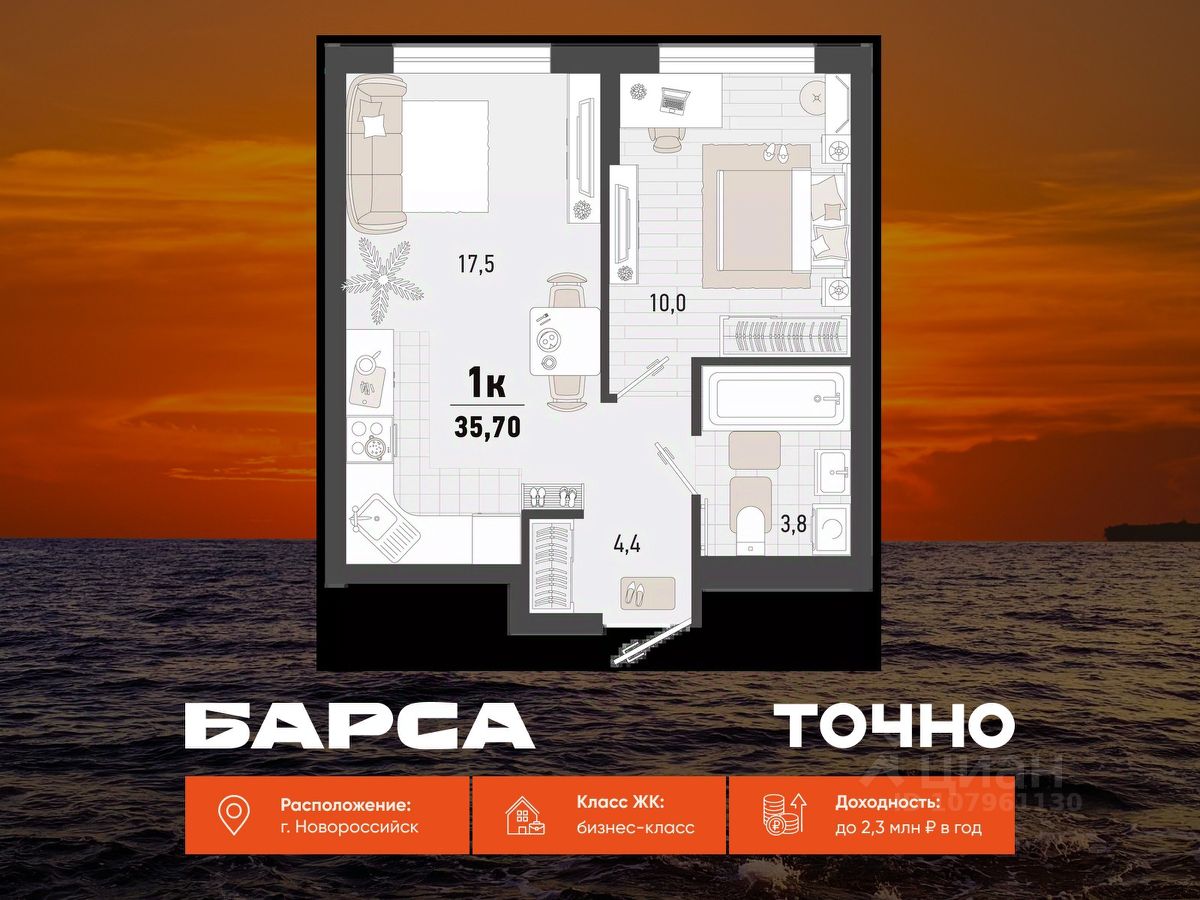 Уникальная 1-комнатная Квартира 28 площадью 57,86 кв.м. в ЖК ''Золотой Берег'' — 800 метров или 10 минут до моря, современный дизайн и все условия для комфортной жизни! Предлагаем вам идеальную квартиру в жилом комплексе ''Золотой Берег'' от компании ''СРЕДАстрой''. Это уникальное предложение сочетает в себе все, что нужно для удобной и комфортной жизни в одном из лучших районов города. Преимущества квартиры: • 800 метров или 10 минут до моря — наслаждайтесь свежим морским воздухом, ежедневным завораживающим видом на море, живописным закатом и это каждый день. • Ипотека от 3,5 % — доступные условия для приобретения квартиры/ жилья вашей мечты. • Рядом с домом: 2 детских сада, 4 школы — всё необходимое для развития и обучения ваших детей в шаговой доступности. • Детские площадки во дворе без машин — безопасная среда для игр и отдыха. • Выбор отделки: квартиры с качественной отделкой или качественная ПЧО/ без отделки, что позволит вам создать интерьер по своему вкусу. • Современный и красивый дизайн домов, подъездных холов — эстетика и стиль, продуманные до мелочей. Инфраструктура: • В шаговой доступности: гипермаркет Лента, магазины, кафе, аптеки, фитнес-центры — всё, что нужно для комфортной жизни. • Тип дома: монолитно-кирпичный, построенный по современным технологиям, 17/ 16 этажей с прилегающими торгово-офисными помещениями. • Паркинг: -1 этаж подземный отапливаемый паркинг с видеонаблюдением 24/7. Прямой доступ на лифте — удобно и безопасно.закрытая территория всего комплекса, нет посторонних людей. Описание квартиры: • Просторные комнаты с продуманной планировкой и панорамными окнами. • Возможность индивидуального дизайна интерьера или готовая качественная отделка. • Современные инженерные системы и высококачественные материалы. ЖК ''Золотой Берег'' — это сочетание высокого качества строительства, удобной инфраструктуры и прекрасного расположения. Здесь каждый найдет всё, что нужно для комфортной и счастливой жизни.