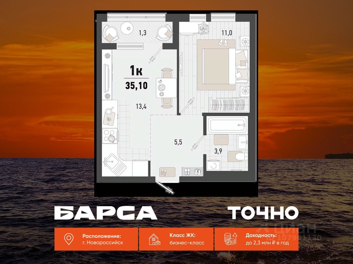 Уникальная 1-комнатная Квартира 63 площадью 57,86 кв.м. в ЖК ''Золотой Берег'' — 800 метров или 10 минут до моря, современный дизайн и все условия для комфортной жизни! Предлагаем вам идеальную квартиру в жилом комплексе ''Золотой Берег'' от компании ''СРЕДАстрой''. Это уникальное предложение сочетает в себе все, что нужно для удобной и комфортной жизни в одном из лучших районов города. Преимущества квартиры: • 800 метров или 10 минут до моря — наслаждайтесь свежим морским воздухом, ежедневным завораживающим видом на море, живописным закатом и это каждый день. • Ипотека от 3,5 % — доступные условия для приобретения квартиры/ жилья вашей мечты. • Рядом с домом: 2 детских сада, 4 школы — всё необходимое для развития и обучения ваших детей в шаговой доступности. • Детские площадки во дворе без машин — безопасная среда для игр и отдыха. • Выбор отделки: квартиры с качественной отделкой или качественная ПЧО/ без отделки, что позволит вам создать интерьер по своему вкусу. • Современный и красивый дизайн домов, подъездных холов — эстетика и стиль, продуманные до мелочей. Инфраструктура: • В шаговой доступности: гипермаркет Лента, магазины, кафе, аптеки, фитнес-центры — всё, что нужно для комфортной жизни. • Тип дома: монолитно-кирпичный, построенный по современным технологиям, 17/ 16 этажей с прилегающими торгово-офисными помещениями. • Паркинг: -1 этаж подземный отапливаемый паркинг с видеонаблюдением 24/7. Прямой доступ на лифте — удобно и безопасно.закрытая территория всего комплекса, нет посторонних людей. Описание квартиры: • Просторные комнаты с продуманной планировкой и панорамными окнами. • Возможность индивидуального дизайна интерьера или готовая качественная отделка. • Современные инженерные системы и высококачественные материалы. ЖК ''Золотой Берег'' — это сочетание высокого качества строительства, удобной инфраструктуры и прекрасного расположения. Здесь каждый найдет всё, что нужно для комфортной и счастливой жизни.