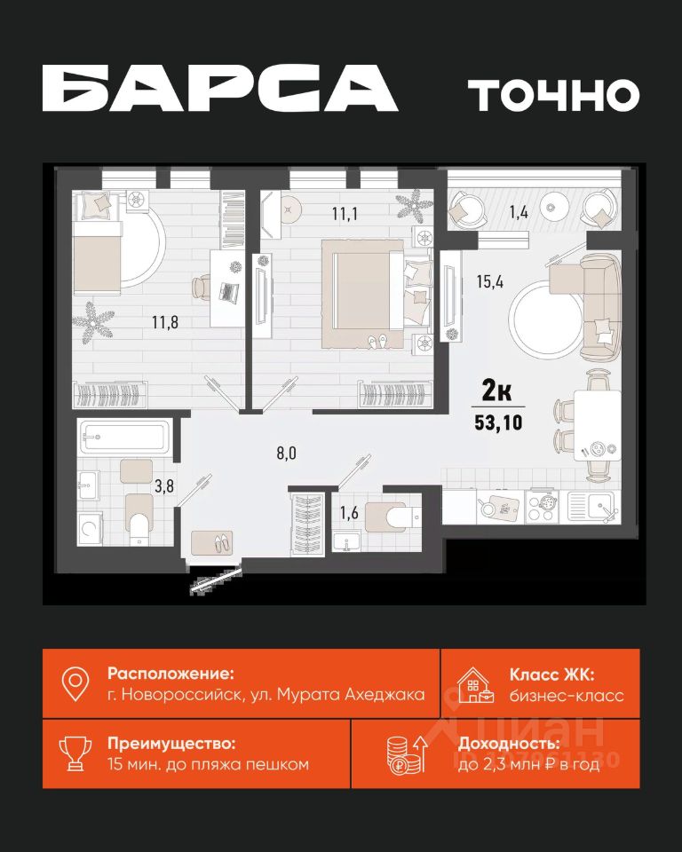 Жилой комплекс ''Барса'' расположился в самом живописном Южном районе Новороссийска, всего в 15 минутах ходьбы от пляжа ''Алексино''. Море будет видно даже из окон невысоких этажей. Проект объединяет просторные квартиры с панорамными окнами, продуманные зоны отдыха и площадки для спорта, прогулочный бульвар, беседки и уникальные арт-объекты. В жилом комплексе запланированы детский сад на 380 мест и школа на 1 750 мест. Больше не нужно выбирать между жизнью на курорте и в мегаполисе. ''Барса'' — новый проект для безупречной жизни людей на побережье!