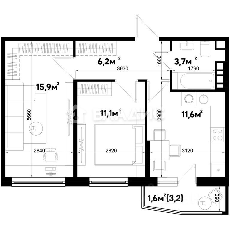60 м² · Этаж 16 из 16