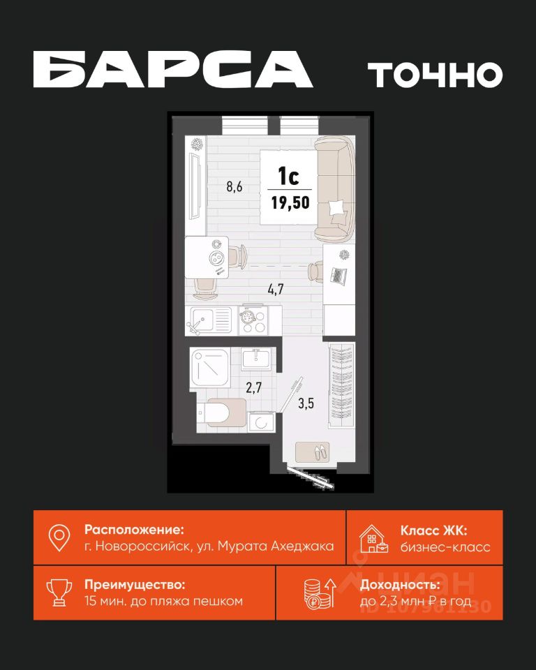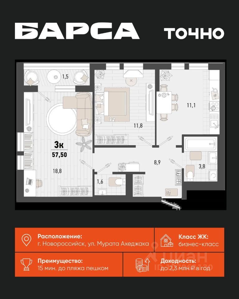 Жилой комплекс ''Барса'' расположился в самом живописном Южном районе Новороссийска, всего в 15 минутах ходьбы от пляжа ''Алексино''. Море будет видно даже из окон невысоких этажей. Проект объединяет просторные квартиры с панорамными окнами, продуманные зоны отдыха и площадки для спорта, прогулочный бульвар, беседки и уникальные арт-объекты. В жилом комплексе запланированы детский сад на 380 мест и школа на 1 750 мест. Больше не нужно выбирать между жизнью на курорте и в мегаполисе. ''Барса'' — новый проект для безупречной жизни людей на побережье!