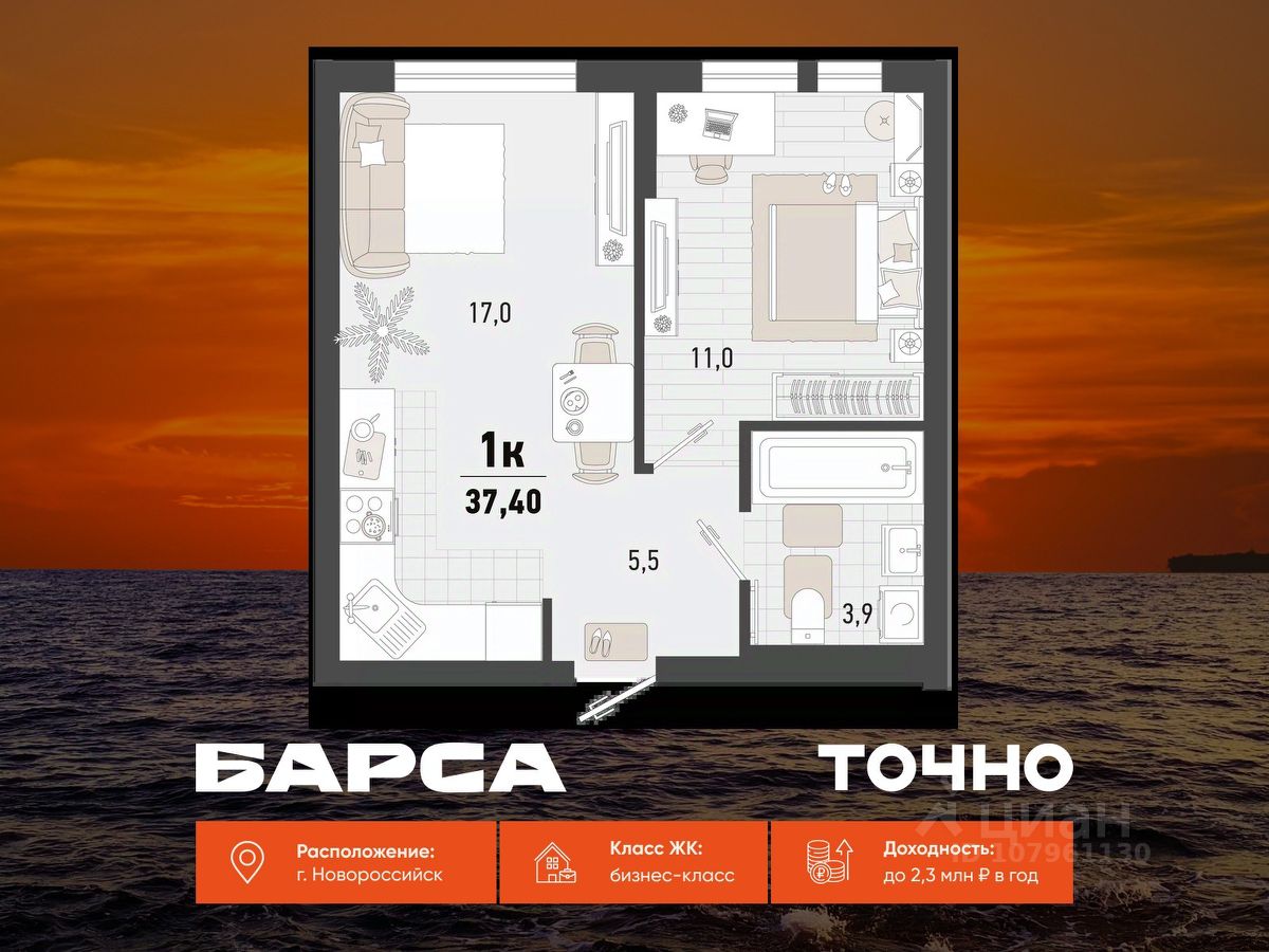 ЖК ''Моренуар'' — это новый уровень жизни в Новороссийске: современная архитектура, вдохновлённая морем, продуманный комфорт и высокая инвестиционная привлекательность. Эстетика курортной жизни в городе! Престижное местоположение. Комплекс расположен в южном районе Новороссийска, по адресу ул. Котанова 9. Близость к Чёрному морю — морские бризы, панорамные виды на горы и лёгкий доступ к пляжу. Высокое качество строительства. Монолитно-каркасная технология строительства гарантирует надёжность, отличную звукоизоляцию и энергоэффективность. Вентилируемый фасад из композитных панелей, благородных коричневого и бежевого оттенков, придаёт комплексу респектабельный внешний вид и обеспечивает долговечность конструкции. Высота потолков варьируется от 2,87 м до 6,4 м. На верхних этажах расположены видовые квартиры с просторными террасами, откуда открываются панорамные виды на город и море. Внутренне пространство. Дизайнерские холлы с современным оформлением подчёркивают статус жилого комплекса. Входная группа расположена на уровне земли для безопасности и комфорта жителей. Внутри вас ждёт красивая зона ожидания, места для хранения и колясочные. Лифты опускаются в подземный паркинг, обеспечивая удобный доступ к автомобилям в любую погоду. Комплексное видеонаблюдение внутри и снаружи жилого комплекса. Инфраструктура. На территории комплекса расположены 2 школы, 4 детских сада, поликлиника и специализированные студии для развития детей. Спортивные и детские площадки, места отдыха для жителей разных возрастов. На первых этажах комплекса разместятся 128 тысяч квадратных метров коммерческих помещений — магазины, кафе и сервисные центры в шаговой доступности. Варианты отделки. Предчистовая отделка в формате White Box. Это оптимальное решение для тех, кто хочет самостоятельно выбрать финишные материалы и воплотить в жизнь свои дизайнерские идеи. Квартиры с ремонтом - идеальное решение для тех, кто ценит своё время и хочет заехать сразу. Условия приобретения. Ипотека от ведущих банков. Льготные программы. Рассрочка от застройщика. Покупка для инвестиций. К моменту сдачи объекта стоимость вырастает — чистая прибыль без риска. Забронируйте квартиру сейчас и зафиксируйте цену на старте — это ваше преимущество на растущем рынке Новороссийска.