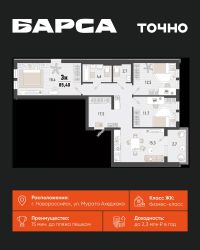 Продаётся 2-комнатная квартира в строящемся доме (Корпус А5), срок сдачи: IV-кв. 2026, общей площадью 75.94 кв.м., на 7 этаже. Обособленный тихий жилой микрорайон класса комфорт-плюс в Южном районе города Новороссийска, расположенный вдоль новой автодороги ''Южный обход''. Рядом находится крупный транспортный узел. Пересечение Мысхакского шоссе и автодороги Южный обход. Застройщиком будет запущен бесплатный электротранспорт до пляжа в с. Мысхако. Передовые системы безопасности, видеонаблюдение, закрытая территория и бесконтактный электронный пропуск.