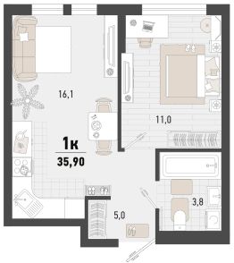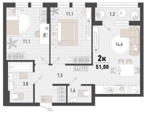 1-к, Барса ЖК, 2в Показать на карте