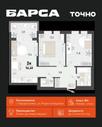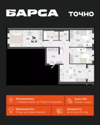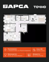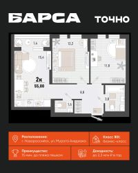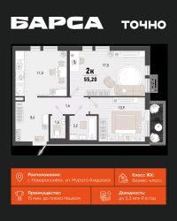 2-к, Барса ЖК, 2в Показать на карте