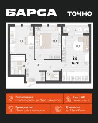 3-к, Барса ЖК, 1в Показать на карте