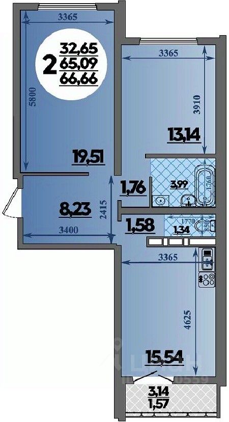 66 м² · Этаж 9 из 16
