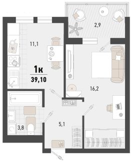 2-к, Барса ЖК, 1в Показать на карте