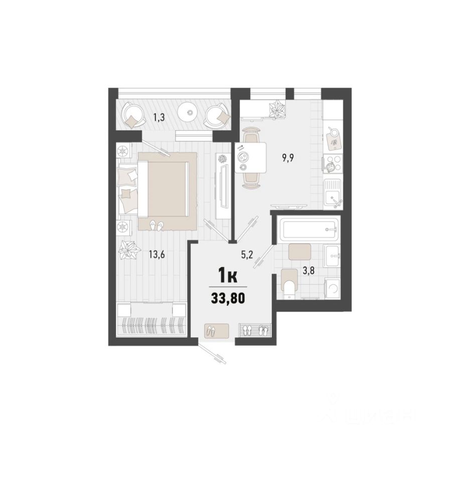 26 м² · Этаж 13 из 16