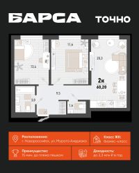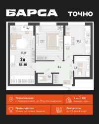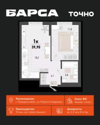 1-к, Барса ЖК, 1в Показать на карте