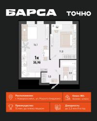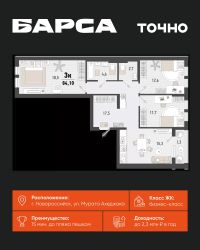 3-к, Барса ЖК, 1в Показать на карте