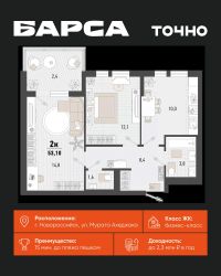 Жилой комплекс ''Барса'' расположился в самом живописном Южном районе Новороссийска, всего в 15 минутах ходьбы от пляжа ''Алексино''. Море будет видно даже из окон невысоких этажей. Проект объединяет просторные квартиры с панорамными окнами, продуманные зоны отдыха и площадки для спорта, прогулочный бульвар, беседки и уникальные арт-объекты. В жилом комплексе запланированы детский сад на 380 мест и школа на 1 750 мест. Больше не нужно выбирать между жизнью на курорте и в мегаполисе. ''Барса'' — новый проект для безупречной жизни людей на побережье!