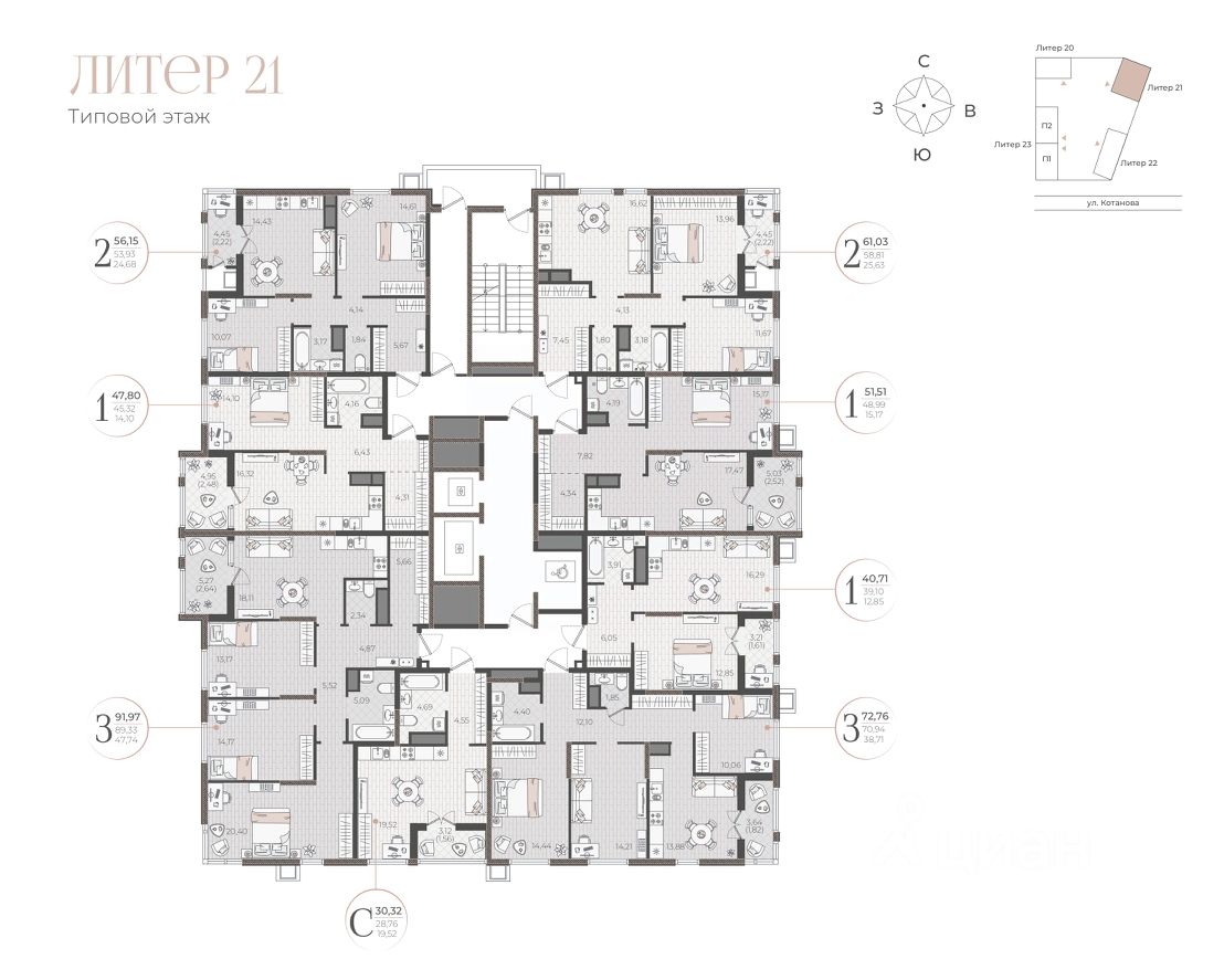 61 м² · Этаж 13 из 18