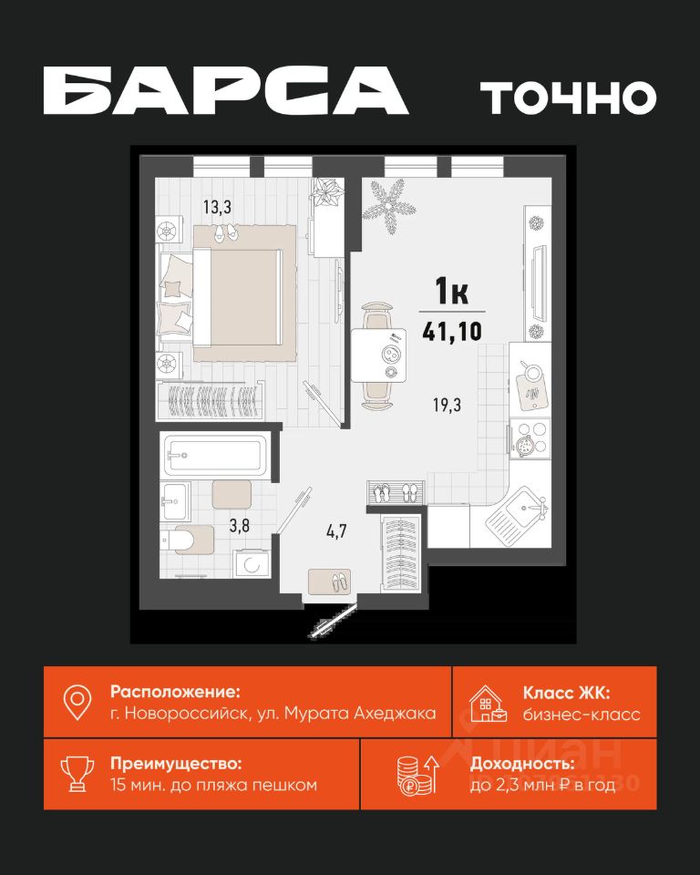 1-к, Барса ЖК, 1в