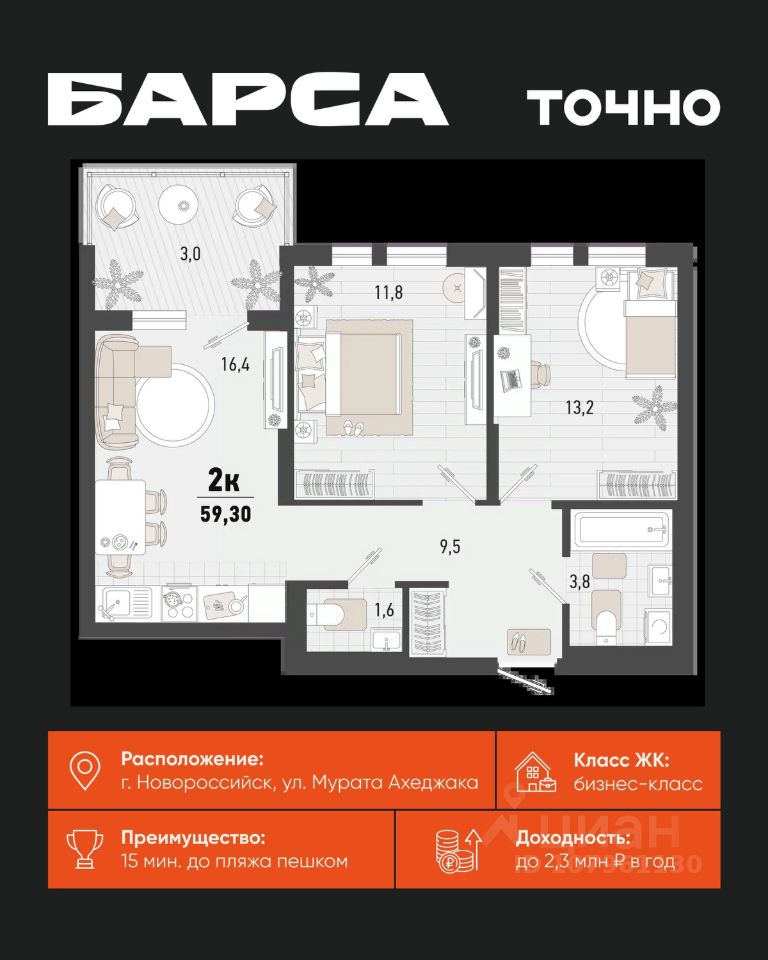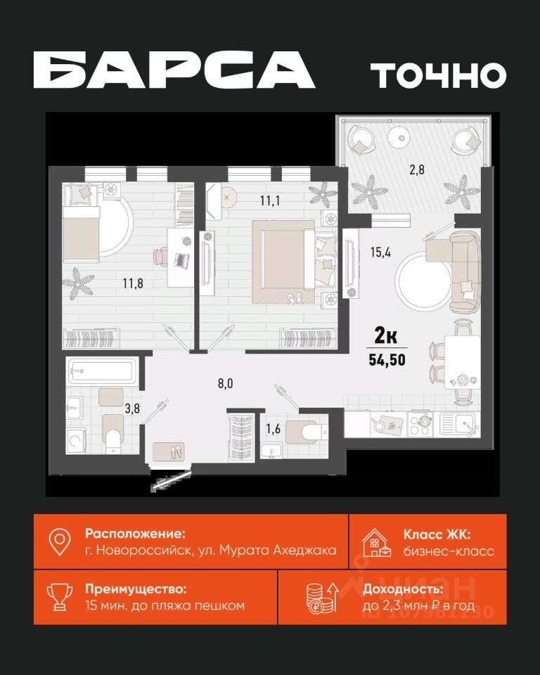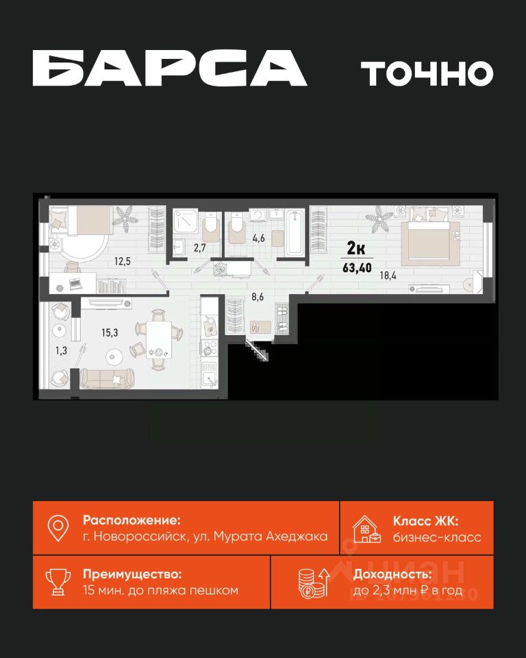 Жилой комплекс ''Барса'' расположился в самом живописном Южном районе Новороссийска, всего в 15 минутах ходьбы от пляжа ''Алексино''. Море будет видно даже из окон невысоких этажей. Проект объединяет просторные квартиры с панорамными окнами, продуманные зоны отдыха и площадки для спорта, прогулочный бульвар, беседки и уникальные арт-объекты. В жилом комплексе запланированы детский сад на 380 мест и школа на 1 750 мест. Больше не нужно выбирать между жизнью на курорте и в мегаполисе. ''Барса'' — новый проект для безупречной жизни людей на побережье!