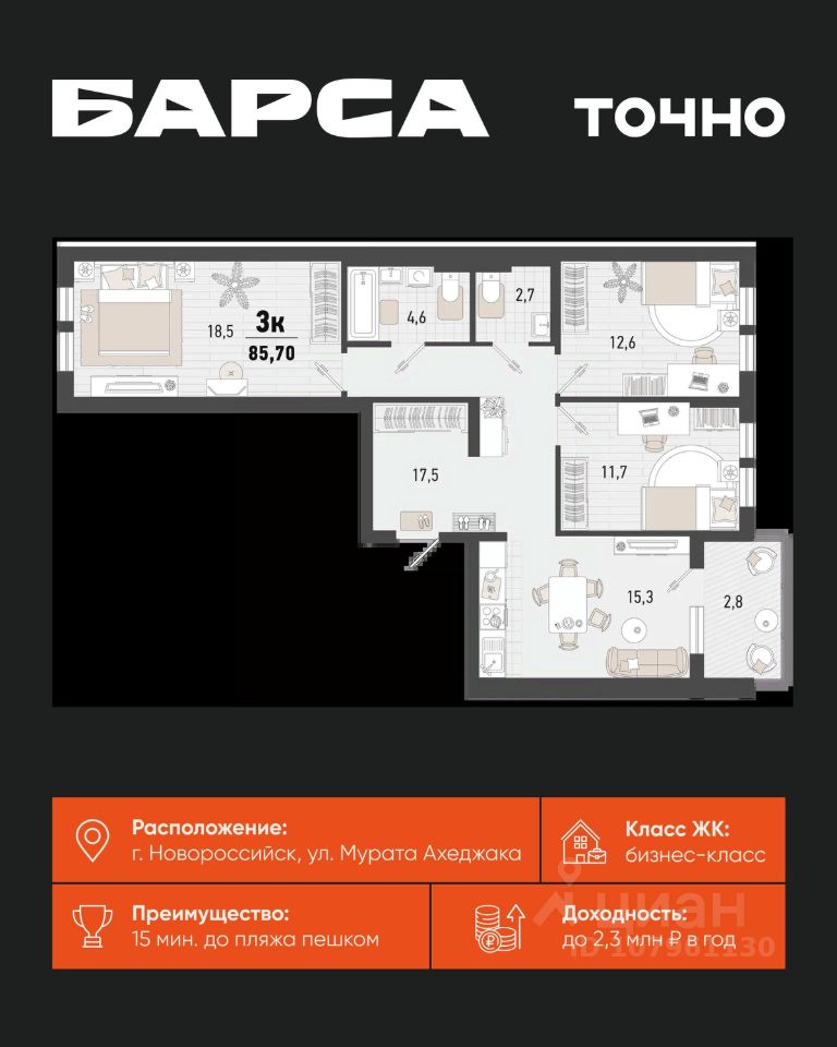 3-к, Барса ЖК, 2в