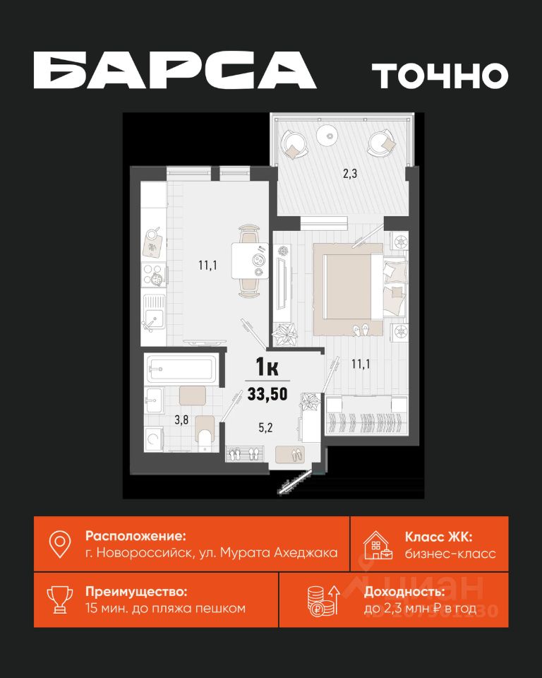 1-к, Барса ЖК, 2в