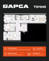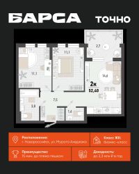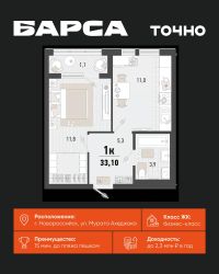 1-к, Барса ЖК, 2в Показать на карте