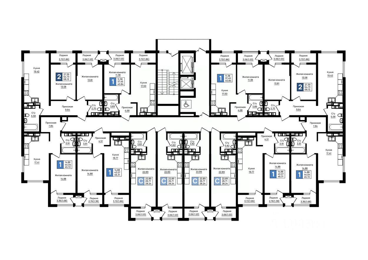 68 м² · Этаж 12 из 18