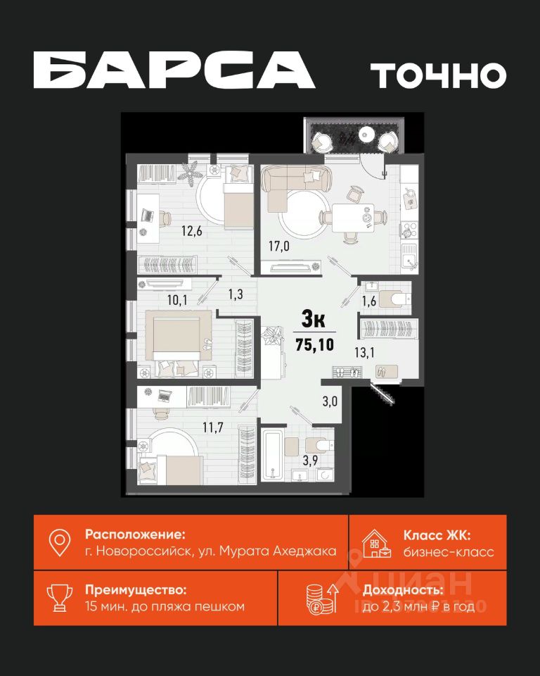 3-к, Барса ЖК, 2в