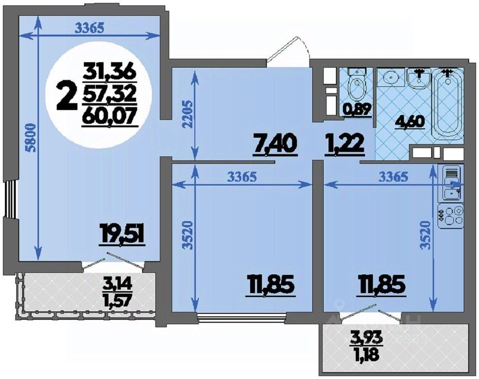 57 м² · Этаж 15 из 16