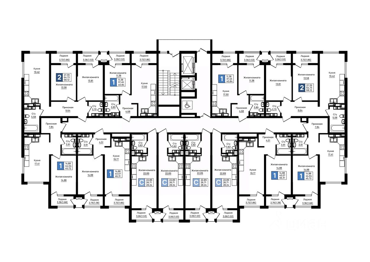 68 м² · Этаж 11 из 18