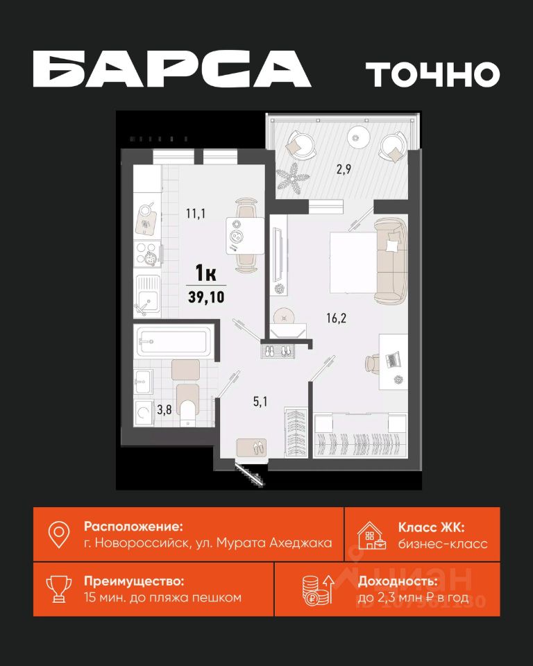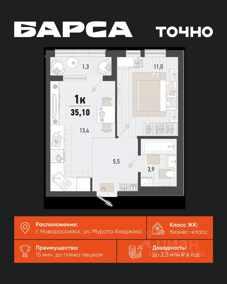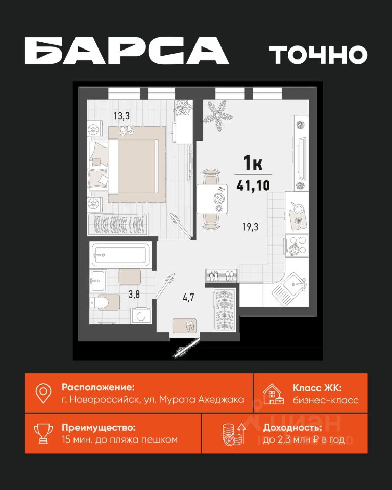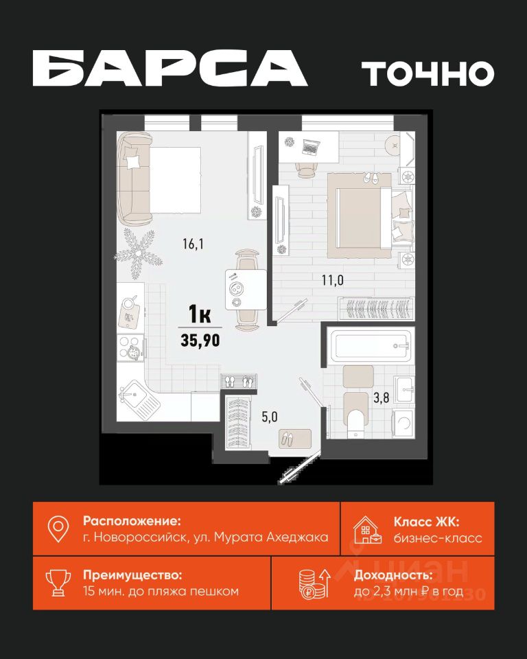 1-к, Барса ЖК, 2в
