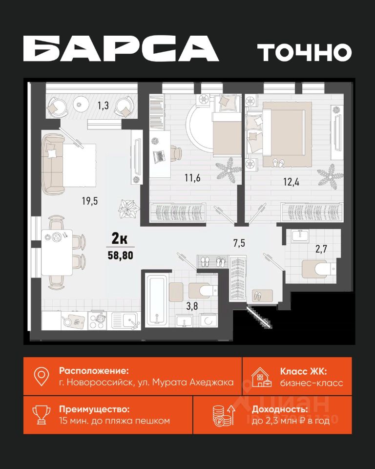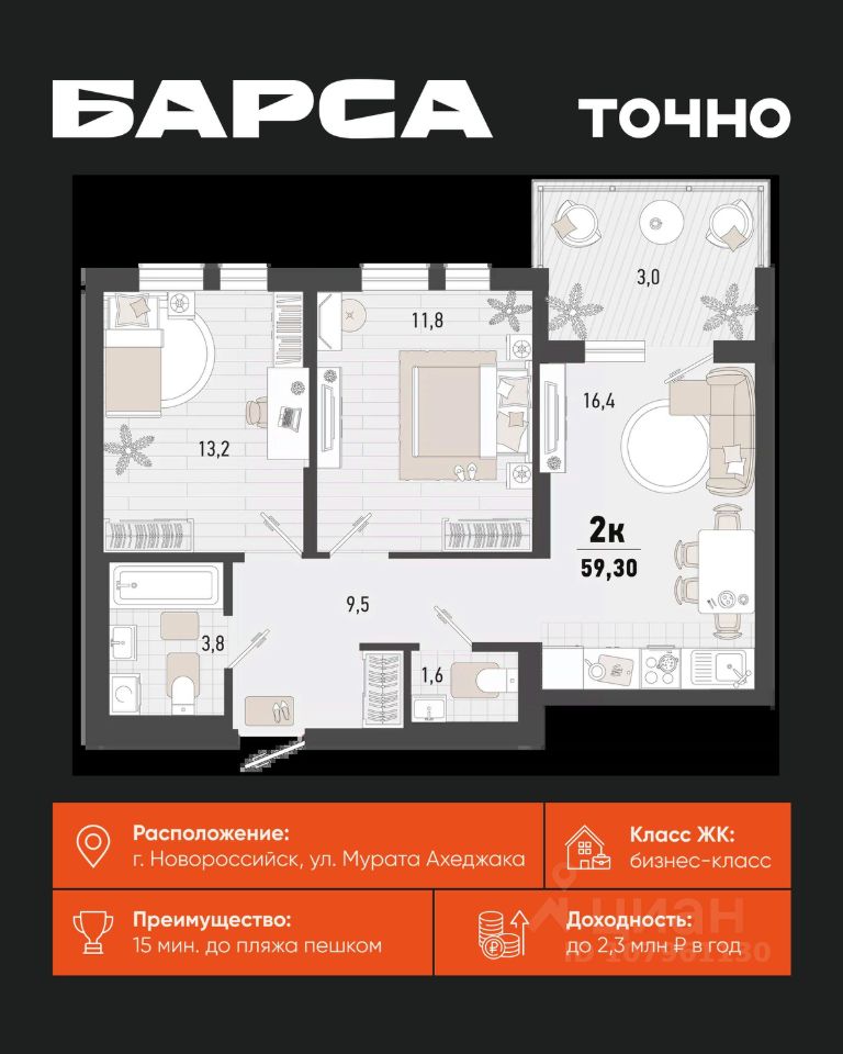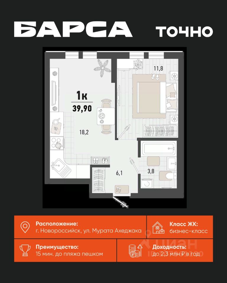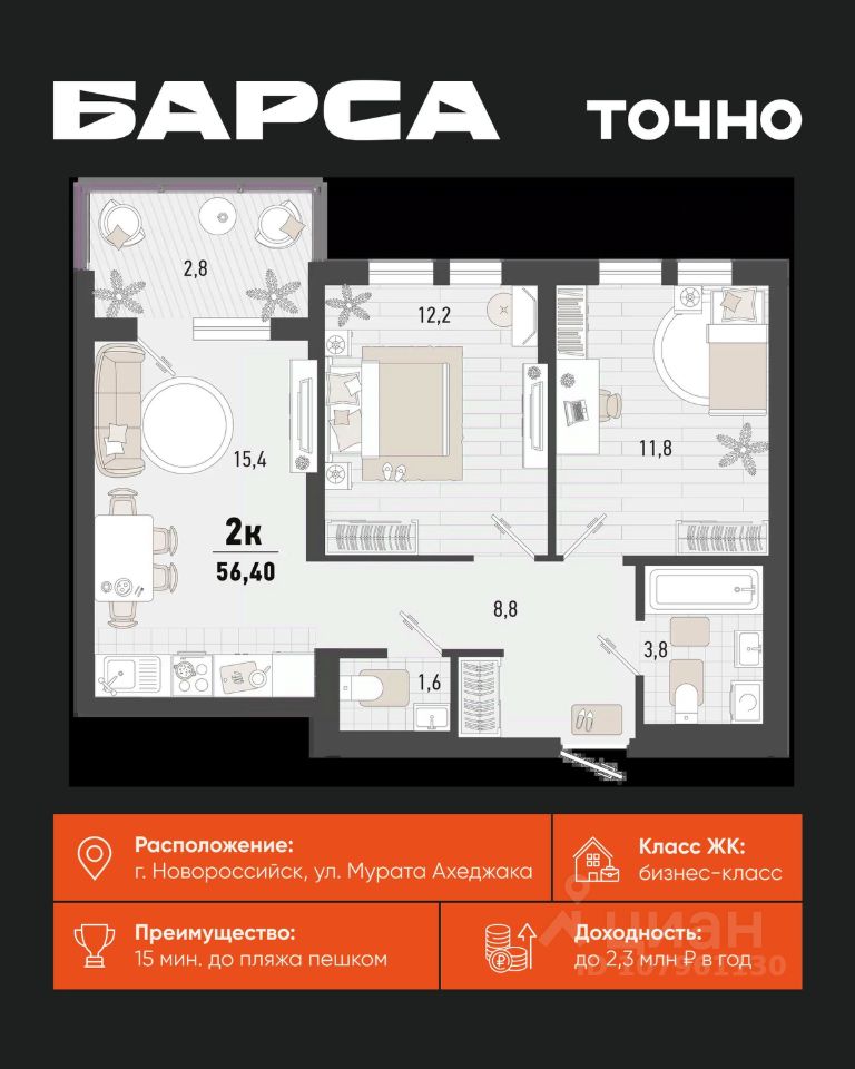 Жилой комплекс ''Барса'' расположился в самом живописном Южном районе Новороссийска, всего в 15 минутах ходьбы от пляжа ''Алексино''. Море будет видно даже из окон невысоких этажей. Проект объединяет просторные квартиры с панорамными окнами, продуманные зоны отдыха и площадки для спорта, прогулочный бульвар, беседки и уникальные арт-объекты. В жилом комплексе запланированы детский сад на 380 мест и школа на 1 750 мест. Больше не нужно выбирать между жизнью на курорте и в мегаполисе. ''Барса'' — новый проект для безупречной жизни людей на побережье!