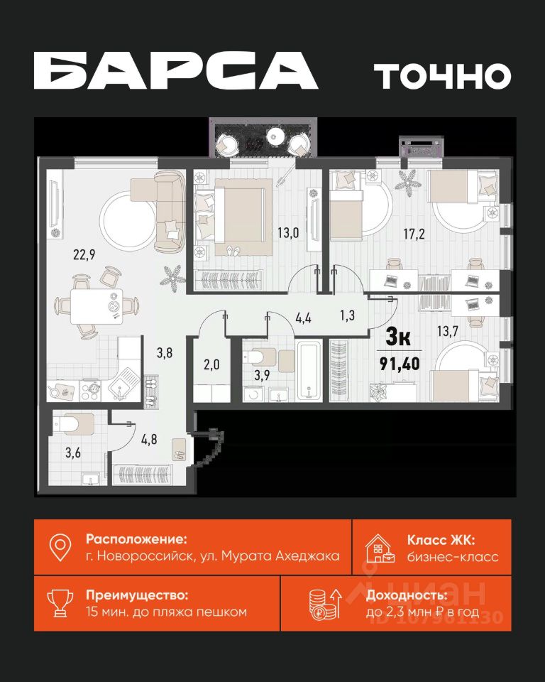 3-к, Барса ЖК, 2в