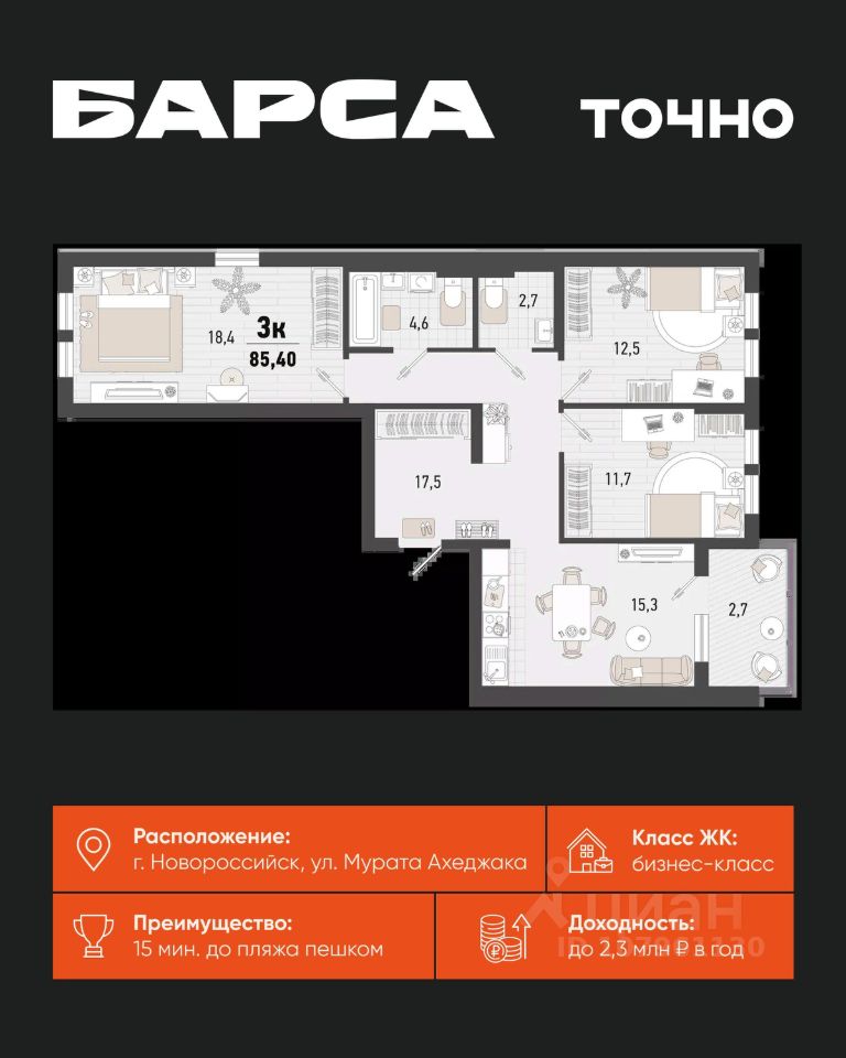 85 м² · Этаж 3 из 15