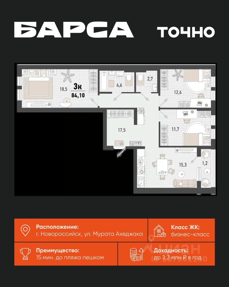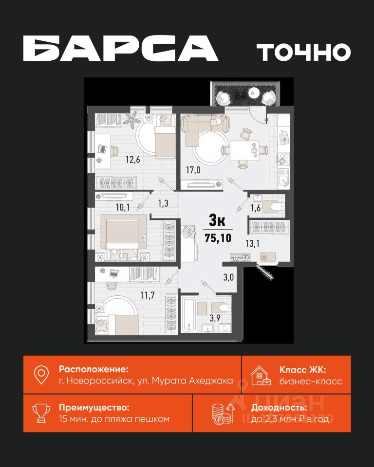 3-к, Барса ЖК, 1в