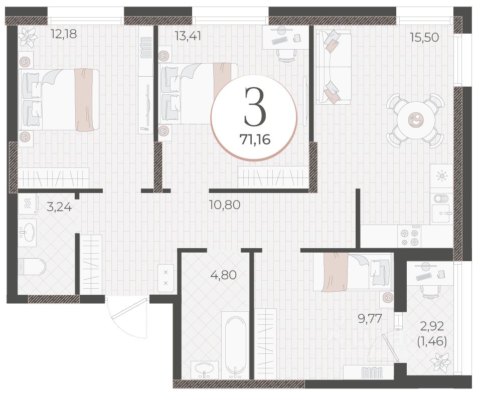 56 м² · Этаж 3 из 18