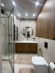 В продаже 3 комнатная квартира с ремонтом под ключ в Жилом комплексе на проспекте Ленина, 95 проект Специализированного застройщика Компания ВЫБОР - крупнейшего в Новороссийске в сегменте премиум-жилья. Это жилой квартал бизнес-класса, проработанный в отношении дизайна, возведенный по технологии монолитного строительства с кирпичной облицовкой стен. Просторные квартиры, обустроенное придомовое пространство, охраняемая территория, видеонаблюдение, ландшафтный дизайн с озеленением, подземная парковка, объекты социальной инфраструктуры на нижних этажах зданий.Восточная сторона комплекса выходит окнами к лиману и береговой линии Суджукской косы. Западная сторона обращена к Пионерской роще. Из окон северной стороны просматривается мемориальный комплекс Малая Земля. Южные окна смотрят на спортивные объекты и футбольные поля. В шаговой доступности фитнес-центры, кафе и рестораны, гипермаркет Магнит, школы, поликлиники и детские сады, благоустроенный пляж Суджукская Коса и Алексино.О квартире Общая площадь с учетом лоджии 105,8 Площадь квартиры 100,6, Жилая площадь 58,5, Кухня столовая - 20,0, спальни 15,0 + 20,0+23 , ванная комната 4,5, Санузел и прачечная 3,9 В квартире выполнен полный ремонт с использованием высококачественных, экологически чистых отделочных материалов - на полу паркетная доска , стены - декоративная штукатурка и окраска, потолки комбинированные, оборудованы подсветкой по периметру каждой зоны, теплый пол в санузлах и коридоре, ванная комната керамогранит , керамическая плитка. Во всех комнатах установлены радиаторы отопления, в столовой , где панорамное остекление конвектор. Из одной из спален выход на большую просторную лоджию с шикарным видом и витражным остеклением в пол. Квартира очень теплая и светлая, приятные спокойные цвета отделки. Установлена кухня от компании Дриада, вся встроенная техника от ведущих производителей BOSCH и NEFF. Комплектация - духовой шкаф, микроволновая печь, варочная панель стеклокерамика, вытяжка, большая посудомоечная машина, мойка из нержавеющей стали, встроенный холодильник и морозильная камера. В сан узле стиральная машинка и сушка. Дорогая качественная мебель, матрасы BOSS.XO, в коридоре и спальне организована встроенная система хранения, в каждой комнате и кухне установлены сплит системы. В квартире никто не проживал, вся мебель и техника новая, останется новым собственникам. Ремонт делался для себя. Все работы выполнены профессионалами своего дела. Продумано все до мелочей, грамотное зонирование, красивая подсветка в каждой комнате, разводка сети интернет и тв кабелей, и многое другое. Все приборы учета воды и электроэнергии, а также тепловой счетчик установлены вне квартиры. Показания снимаются представителями управляющей компании самостоятельно. Все фотографии реальные. Показ по предварительной договоренности в удобное время