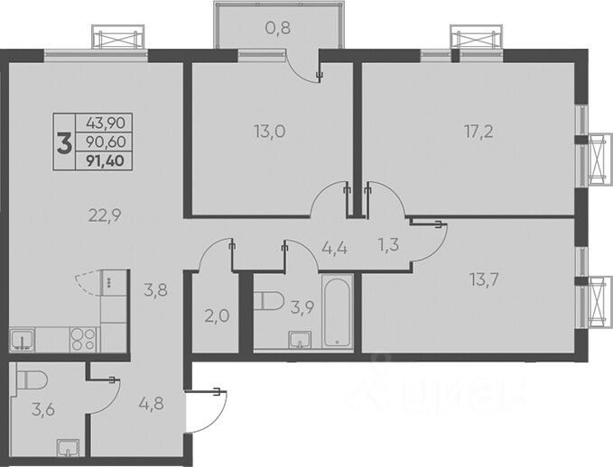 Трехкомнатные