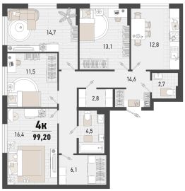 Продаётся 4-комнатная квартира в строящемся доме (Дом 3В), срок сдачи: II-кв. 2027, общей площадью 99.1 кв.м., на 3 этаже. Жилой комплекс ''Барса'' расположился в самом живописном Южном районе Новороссийска, всего в 15 минутах ходьбы от пляжа ''Алексино''. Море будет видно даже из окон невысоких этажей. Проект объединяет просторные квартиры с панорамными окнами, продуманные зоны отдыха и площадки для спорта, прогулочный бульвар, беседки и уникальные арт-объекты. В жилом комплексе запланированы детский сад на 380 мест и школа на 1 750 мест.Больше не нужно выбирать между жизнью на курорте и в мегаполисе. ''Барса'' — новый проект для безупречной жизни людей на побережье!